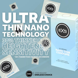 Experience intimacy like never before with EXS Nano Thin Condoms, where thinness meets uncompromising protection for an unforgettable encounter.