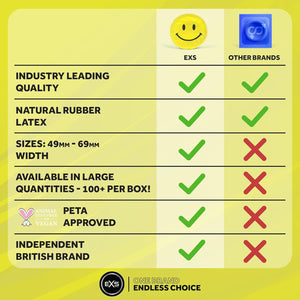 - WHY EXS - If you think condoms get in the way then you are buying the wrong ones, try our range of products. We are the UK's largest independent condom supplier for a reason! Please note packaging may vary.